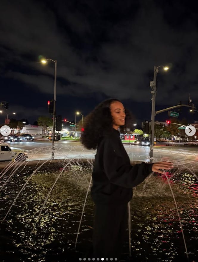 Solange Knowles recently posted some photos of herself frolicking at night in water fountains around the world. One of these was the fountain outside Carson’s City Hall, a suburb in the South Bay of Los Angeles. Carson is my hometown, so over the next day or so my feed was accordingly spammed with reposts from old classmates and cousins. The spot is at a drab intersection between an IHOP and Carl’s, Jr., adding to the amusement. What business does she have here?